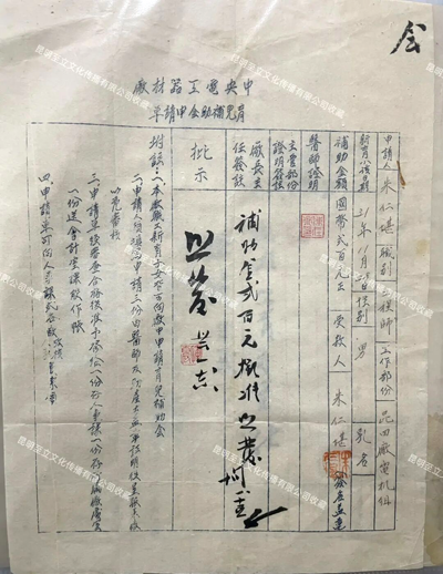 ▲1948年8月中央電工器材廠(昆明電纜集團(tuán)前身)發(fā)放職工育兒補(bǔ)助金圓券20元。