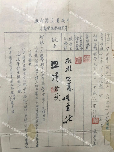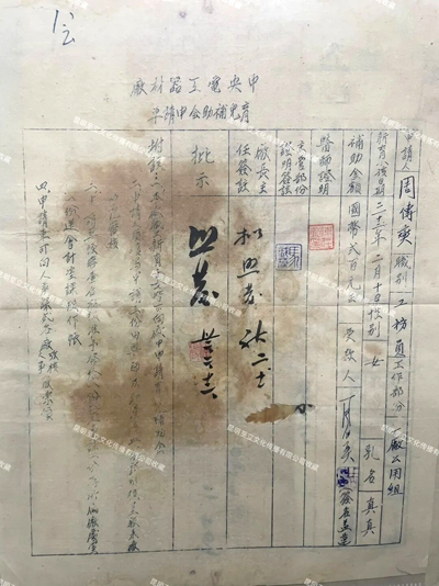 ▲1943年10月中央電工器材廠(昆明電纜集團(tuán)前身)發(fā)放職工育兒補(bǔ)助國(guó)幣300元。