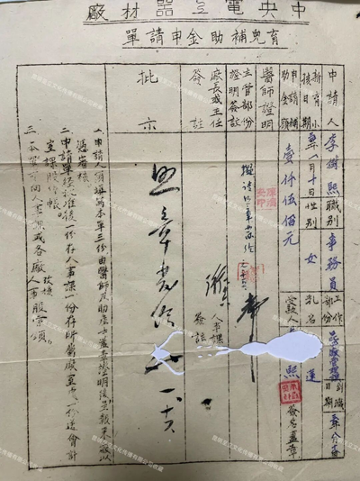 ▲1945年1月中央電工器材廠(昆明電纜集團(tuán)前身)發(fā)放職工育兒補(bǔ)助國(guó)幣1500元。