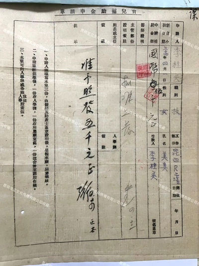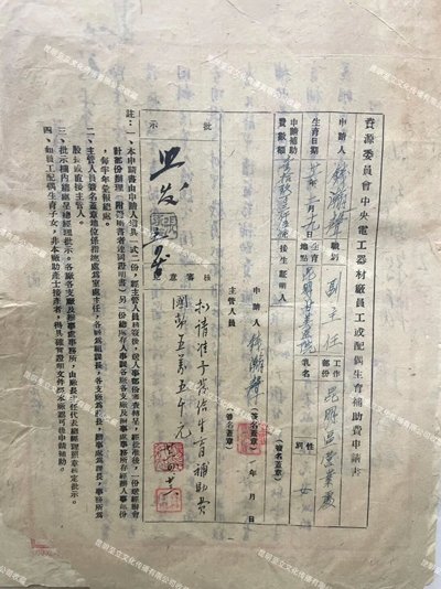 ▲1942年11月,中央電工器材廠(昆明電纜集團(tuán)前身)發(fā)放職工育兒補(bǔ)助國(guó)幣200元。