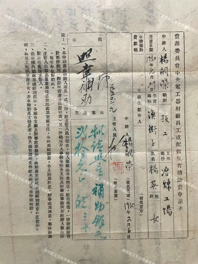 ▲1950年2月電工器材廠(昆明電纜集團(tuán)前身)發(fā)放職工育兒補(bǔ)助銀元20元。
